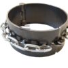 Dieses extra hohe massive Stahlhalsband sorgt für eingeschränkte Bewegungsfreiheit des Kopfes und realisiert somit einen buchstäblichen Giraffenhals.