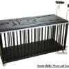 So bietet das SM Möbel einerseits eine geräumige Verwahrungsmöglichkeit und zum Anderen, dank der auf dem Käfig angebrachten Auflage, ein hervorragende Liegefläche zum behandeln der Delinquenten. Die Liegefläche auf dem Käfig lässt sich zusätzlich gegen Aufpreis mit einer Kopf-, Genital- und Brustaussparung ausstatten. Die Kopfaussparung selbst erhöht merklich den Liegekomfort bäuchlings liegender Personen, während die Brust- und Genitalaussparung für einen besseren Zugriff an den Brust- und Genitalbereich sorgt. Zusätzlich lässt sich dazu noch die verschließbare Variante wählen.