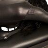 Zusätzlich kann man sich die Liegefläche mit einer anatomisch angeordneten Gurtbespannung zum Durchziehen von Lederriemen bestücken lassen, um ein vollständiges Festschnallen des gesamten Körpers zu realisieren, um jeglichen Bewegungsspielraum restriktiv entgegen zu wirken.