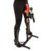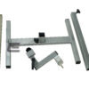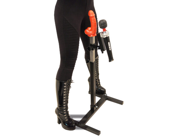 Komplett zerlegbarer Standfuß mit höhenverstellbarem Dildohalter und darunter angebrachter Halterung für einen Wand Massager. Die Halterung für den Wand Massager lässt sich in der Neigung und ebenfalls in der Höhe verstellen.