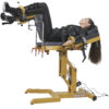Je nach Vorliebe ist dank vorhandener Steckhülse unter der Sitzfläche eine Fickmaschine oder Wand Massager nebst stufenlos horizontal/ vertikal verstellbarer Halterung an diesem SM-Möbel nutzbar.