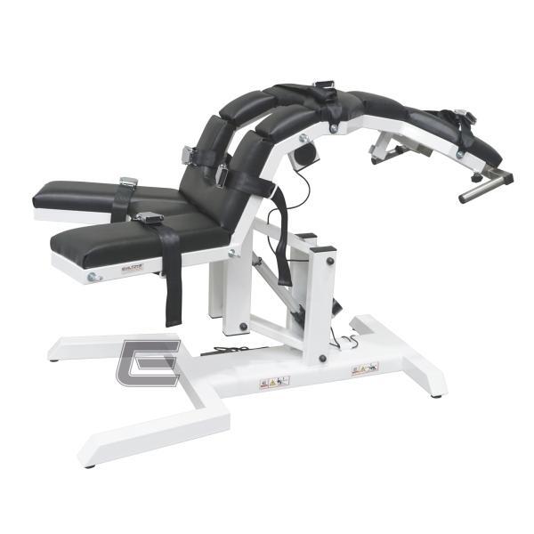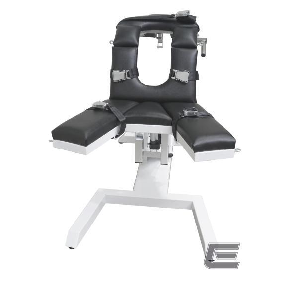 Unter der Kniefläche befinden sich breite Ösen zum durchziehen von wahlweise Lederriemen oder Flugzeuggurten. Am Stahlrahmen befindliche Ringösen oder Klappösen zum einhängen von Lederfesseln bieten gut platziert die Möglichkeit den Probanden zusätzlich zu fixieren.