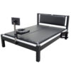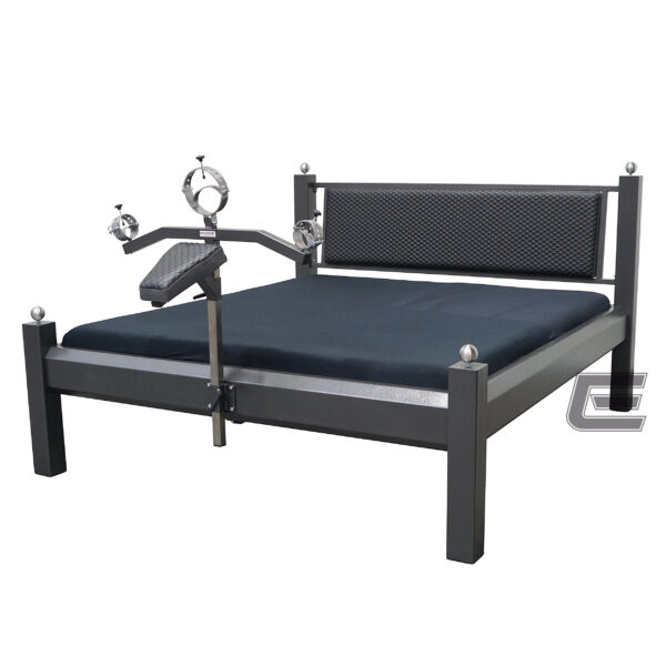 Optional kann Fußende oder an einer der beiden seitlichen Flanken ein anschraubbares, stufenlos verstellbares Prangermodul, ausgestattet mit Ringösen oder Stahlschellen, von beiden Seiten des Stahlbettes aus bespielt werden. Ein zusätzlich erhältlicher Facesittingsitz, wahlweise mit Rückenlehne und/oder Kopfhalter lässt sich ebenfalls leicht an den Profilen der Bettumrandung höhenverstellbar anbringen.