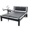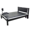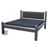 Teilweise verdeckte Schraubverbindungen machen das Stahlbett extremst belastbar. Für Transportzwecke ist das Stahlbett in einzelne, gut transportable Einzeltteile zerlegbar.