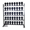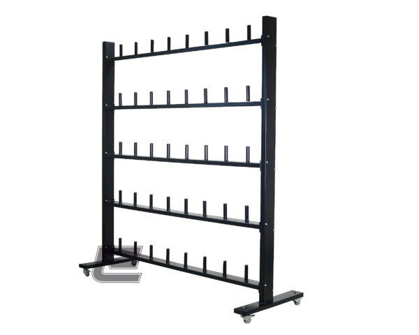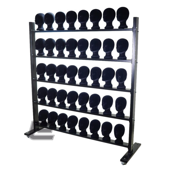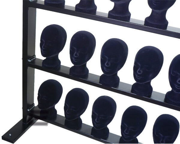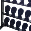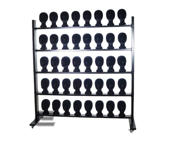Unsere Antwort darauf präsentiert sich in Form unseres großen Maskenständers mit fünf Etagen, der gekonnt und platzsparend auf einer Gesamtbreite von 185cm unglaubliche 40 Kopfhalter beherbergt.