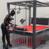 Optional kann am Fußende ein anschraubbares, stufenlos verstellbares Prangermodul, ausgestattet mit Ringösen oder Stahlschellen, von beiden Seiten des Stahlbetts aus bespielt werden.  Eine Sitzfläche realisiert eine solide Unterlage woran sich auch Gynbeinhalter und eine Fickmaschine anbringen lassen.