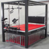 Reichlich Ringösen befinden sich an den Bettpfosten und an den oberen Verstrebung ringsum am Stahlhimmel, so dass sich das Einhängen von Stahlketten oder Durchziehen von Seilen für Fesselspiele oder kreatives Bondage denkbar einfach umsetzen lässt.