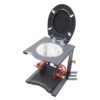 Der Toilettensitz ist in mehreren Farbvarianten erhältlich und überzeugt durch seine hygienische, leicht zu reinigende Oberfläche. Direkt unter dem WC-Sitz befindet sich eine herausnehmbare, transparente Acrylglasschale mit integriertem Ablauf und abschraubbaren Mundstück. Diese ist nicht nur funktional, sondern eröffnet dem Sub unterhalb des Stuhls auch optische Reize. Für eine unkomplizierte Reinigung und zur Desinfektion lässt sich die Schale mit wenigen Handgriffen entfernen.