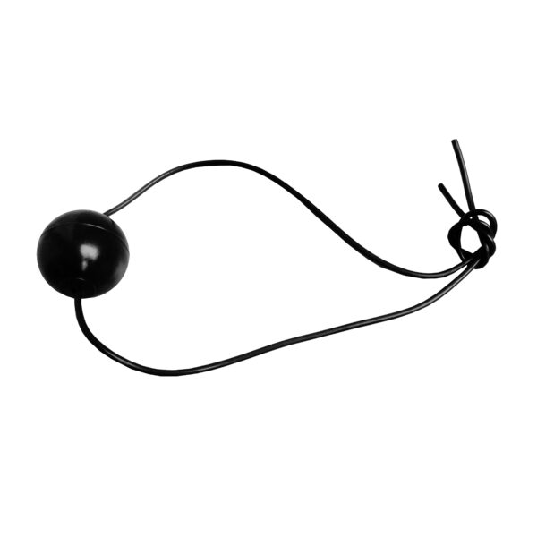 Der Mundknebel hat einen Durchmesser von etwa 40 mm. Die Schnur ist aus Gummi und lässt sich dadurch selbstverständlich an jede Kopfgröße anpassen.