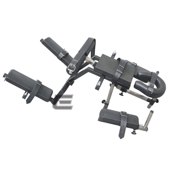 Unterarme, Oberkörper, Becken und Waden lassen sich bei Bedarf mit optional erhältlichen Echtlederriemen sicher fixieren.