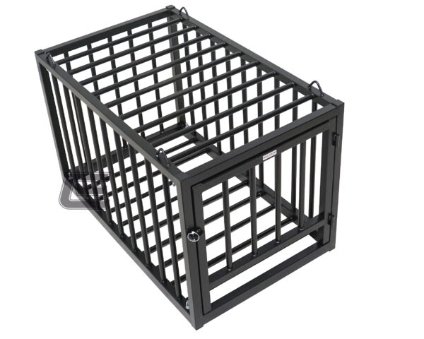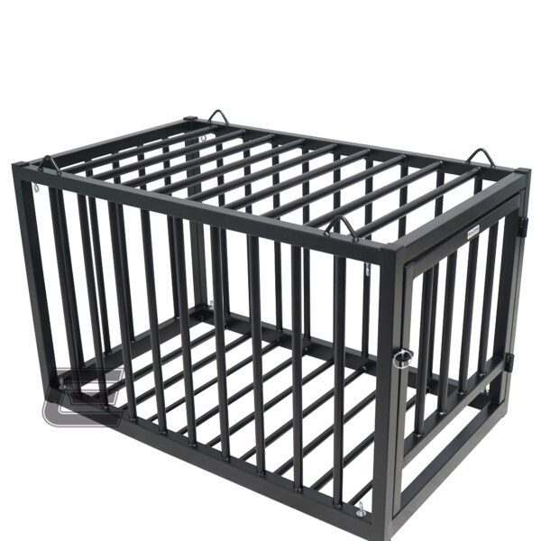 Ein sehr massiver Stahlkäfig an dem alle 6 Seiten mit 25mm starkem Rundrohr vergittert sind, machen hier die Besonderheit aus. Doch damit nicht genug, befinden sich an der Oberseite 4 kräftige Ösen, an denen sich der Stahlkäfig sogar aufhängen lässt.