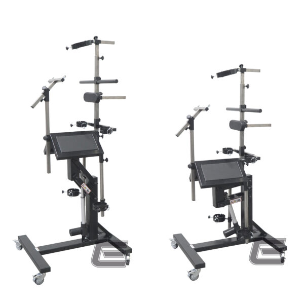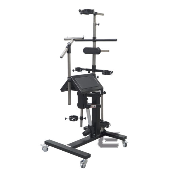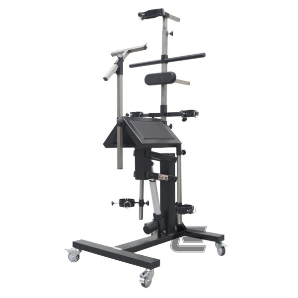 Durch die Fixierung der Armbeugen mithilfe der höhenverstellbaren Ellenbogenstange entsteht eine äußerst strenge Fixierung für den gesamten Oberkörper.