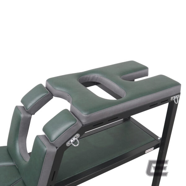 Optional lässt sich auch eine Brustaussparung für eine ungehinderte Zugänglichkeit einarbeiten. Vorn befindet sich ebenfalls eine Aussparung um bequem den Kopf ohne Verdrehen auflegen zu können.