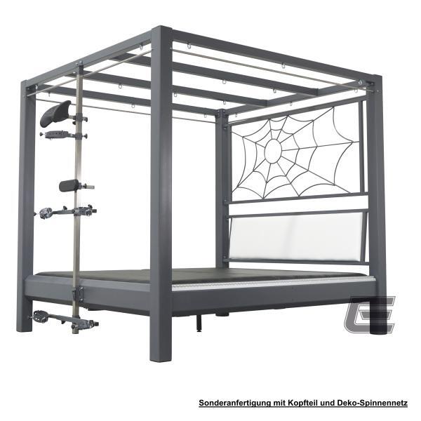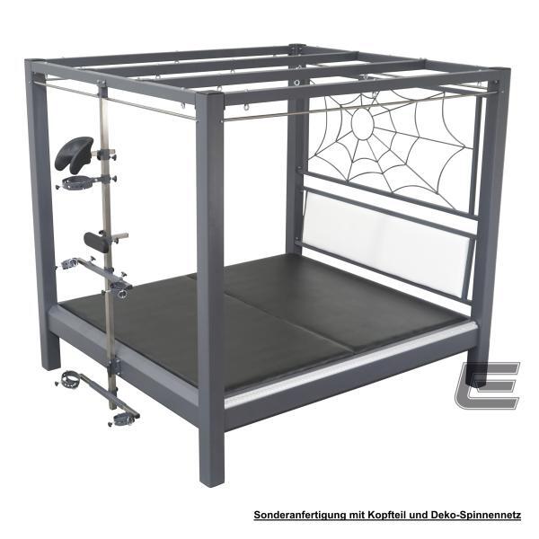 Das Smart Line Stahlbett ist weit mehr als nur ein Möbelstück – es ist ein Raum für Zweisamkeit und intime Momente, der Ihrer Fantasie keine Grenzen setzt. Die oberen Verstrebung ringsum am Stahlhimmel sind mit reichlich Ringösen bestückt, so dass das Einhängen von Stahlketten mittels Karabinerhaken für Slingbretter rasch umsetzbar ist. Aber auch das Durchziehen von Seilen für Fesselspiele oder kreatives Bondage lassen sich denkbar einfach umsetzen.