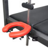 Optional kann am Fußende ein anschraubbares, stufenlos verstellbares Prangermodul, ausgestattet mit Ringösen oder Stahlschellen, von beiden Seiten des Stahlbetts aus bespielt werden.
