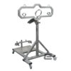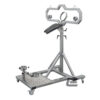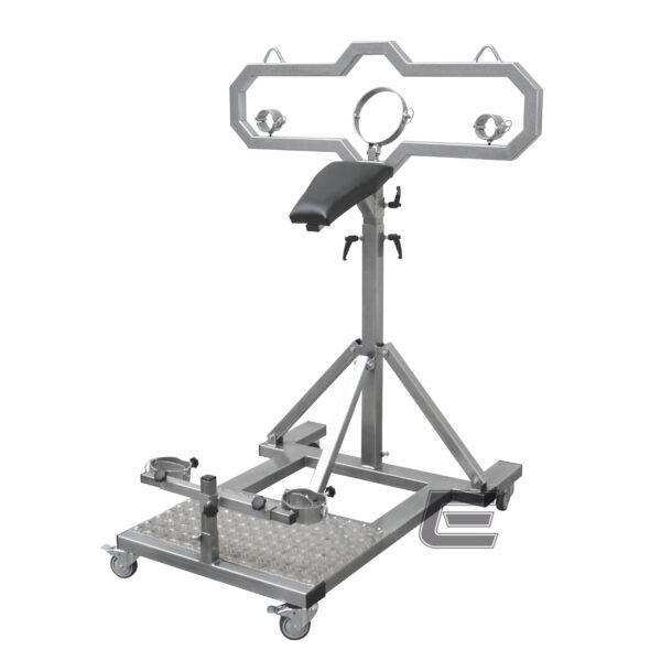Der stabile Standfuß ist frei im Raum aufstellbar und verfügt über einen ruschtfesten Aluminumtritt, worauf sich der Delinquent stehend nach vorn gebeugt in den Pranger begibt.