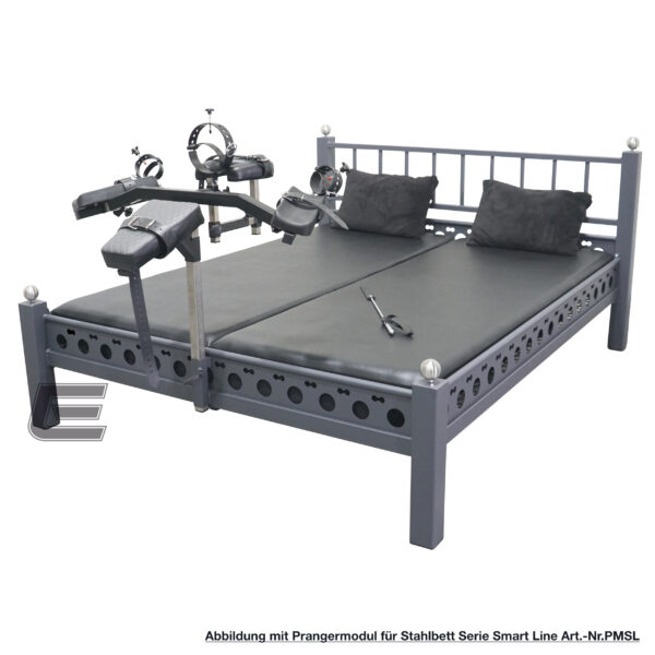 Als optionales Zubehör ist gegen Mehrpreis ein höhenverstellbares Prangermodul wechselseitig als Standpranger (vor dem Bett stehend übergebeugt) oder durch Umdrehen als Kniepranger (auf dem Bett knieend übergebeugt) nutzbar.