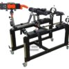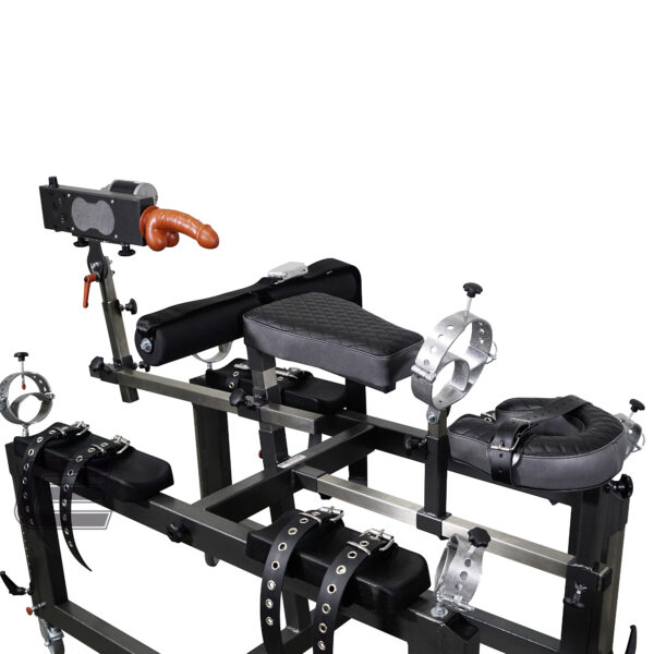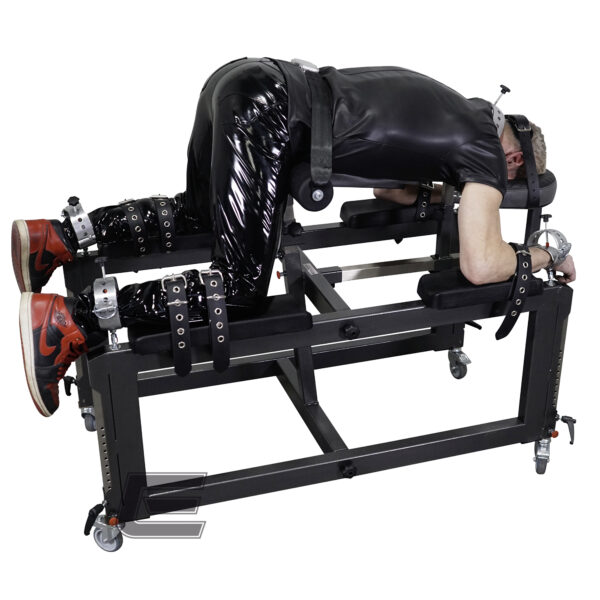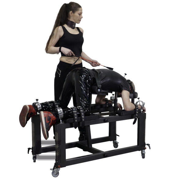 Bei dieser Version von Strafbock sind hinten die Beinauflagen wahlweise in feststehender V-Form oder H-Form erhältlich. Als kleine Steigerung wäre auch die ebenfalls auswählbare Option der stufenlos einstellbaren Spreizweite realisierbar. Diese bietet aufgrund dessen mehr Spreizweite und somit noch bessere Zugriffsmöglichkeiten um Subs von hinten bespielen zu können.