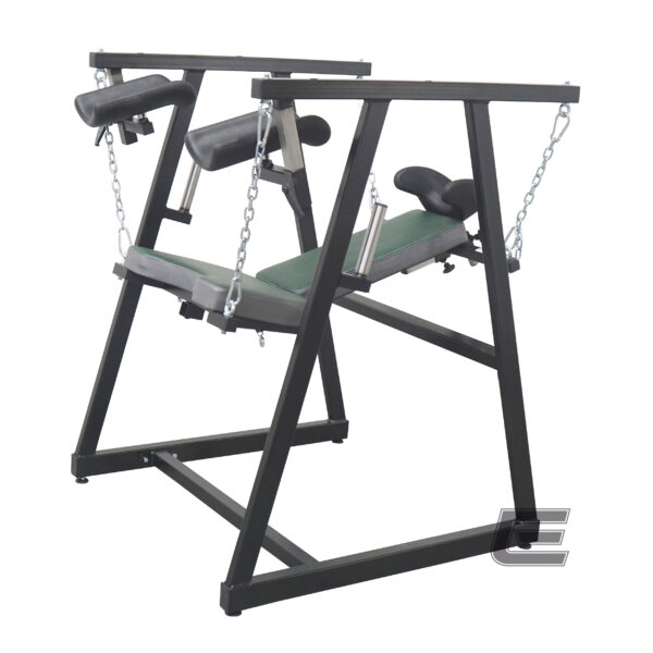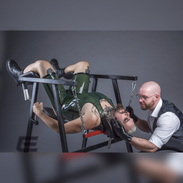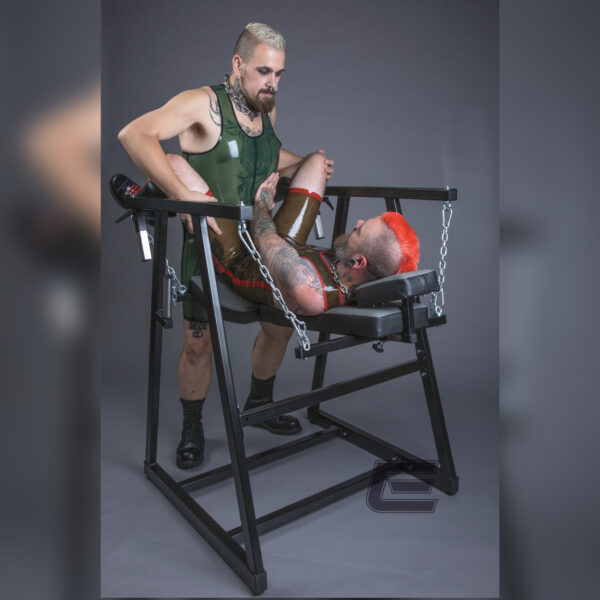 Mit den seitlich am Gestell angebrachten Haltegriffen kann der passive Part die Schaukeldynamik bremsen oder sogar unterstützen. So werden kraftvolle Penetrationsspiele möglich – ohne Ermüdung, dafür mit tieferen Stößen und intensiveren Orgasmen.