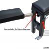 Ansteckbare Armhalter, mit je nach Kundenwunsch ausfallender Fesseleinrichtung, bieten bei einer komplett abgesenkten Lehne eine sehr effektive Gynliege.