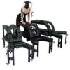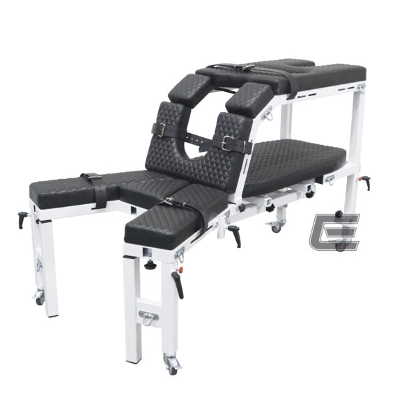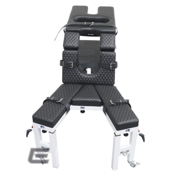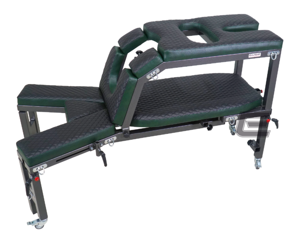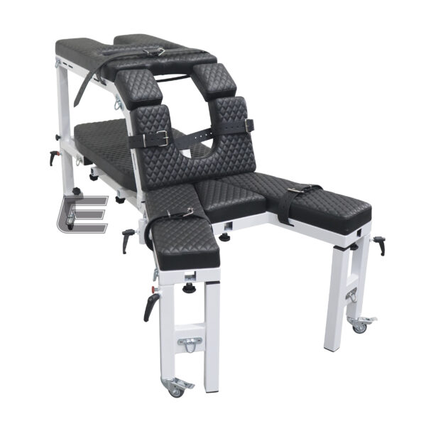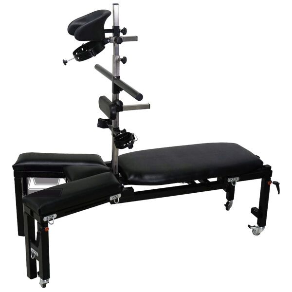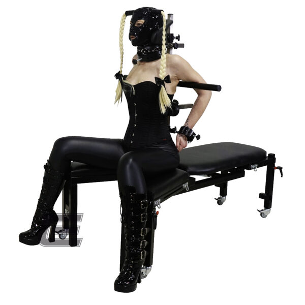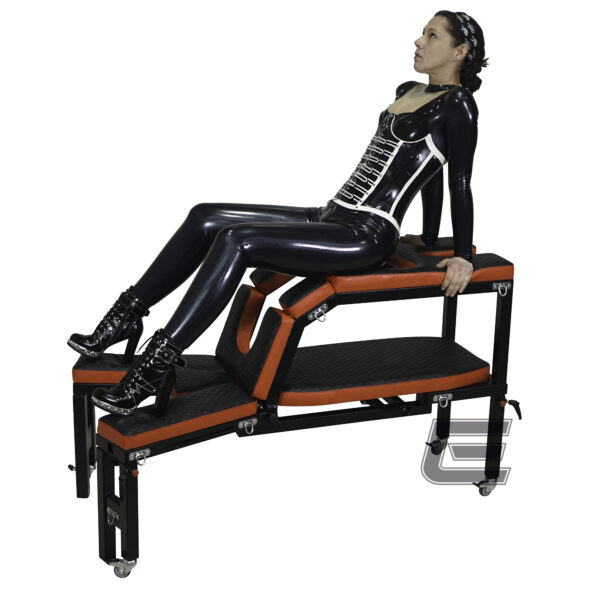 Die Grundvariante des Universal Strafbock Audacious besteht aus einem zerlegbaren Strafbock von dem sich der obere Strafbockaufsatz mit vorhandener Kopf- und Brustaussparung leicht entfernen lässt. Zukünftige Nutzer verfügen nun je nach Konfiguration des SM-Möbels im Handumdrehen, dank werkzeugloser Handhabe, wahlweise über einen Gynstuhl, Fesselliege, Sklavenstuhl oder einer bequemen Facesittingliege mit ansteckbaren Trittflächen.