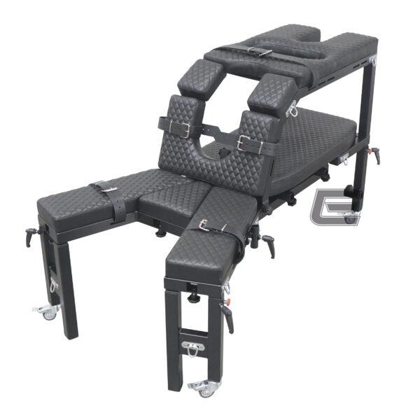 Zukünftige Nutzer verfügen nun je nach Konfiguration des SM-Möbels im Handumdrehen, dank werkzeugloser Handhabe, wahlweise über einen Gynstuhl, Fesselliege, Sklavenstuhl oder einer bequemen Facesittingliege mit ansteckbaren Trittflächen.