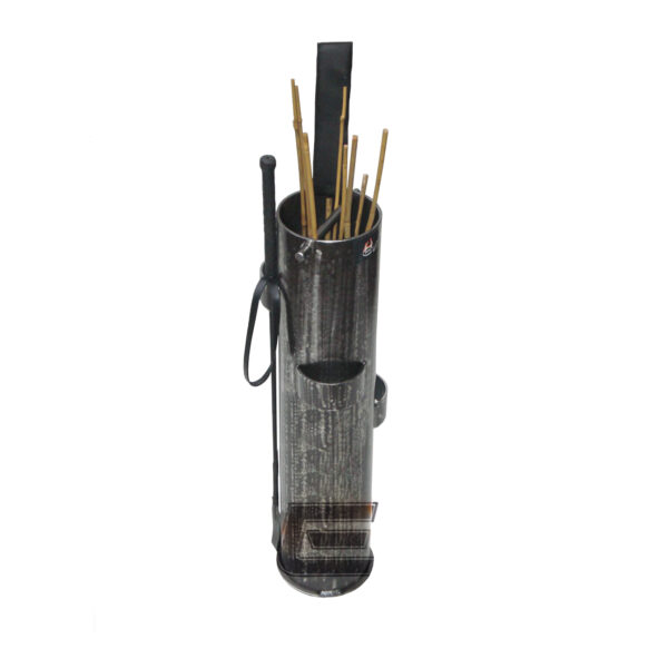 Gut geordnet und jederzeit griffbereit kann man hiermit Rohrstöcke, Gerten oder  andere Schlaginstrumente äußerst praktisch in dem in zwei Kammern aufgeteilten Utensilienständer beherbergen.