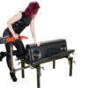 Durchgehenden Knie- und Armauflagen lassen sich wahlweise absenken oder höher stellen. Die ideale und vor allem bequemen Position ist somit rasch gefunden. Ausziehbare Ringösen unter den Auflageflächen sorgen für eine primäre Fixierung. Gut zu wissen: auch für den aktiven Part ist die Höhe des Zuchtbocks leicht mittels höhenverstellbarer Füße individuell auf dessen Körpergröße anpassbar. Somit sind aus verschiedenen Positionen Geschlechtsverkehr oder Strap-on Spiele optimal zu realisieren.