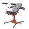 Praktisch ist die vorhandene Höhenverstellung an der Säule des Standfußes, an dem sich der Gynstuhl flott auf die gewünschte Arbeitshöhe einstellen lässt.
