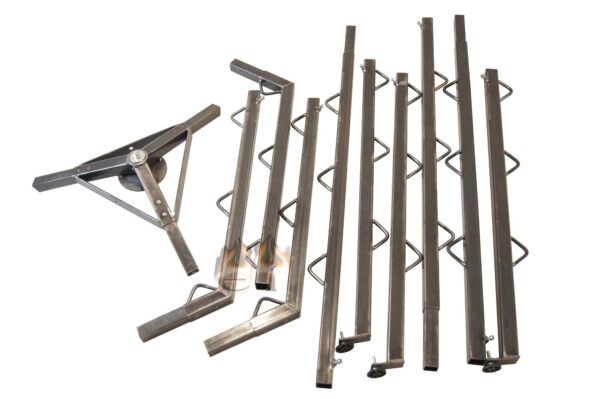 Damit das Bondagegestell transportabel bleibt, lässt es sich flott mittels eines Stecksystems inkl. Schraubensicherung in etliche kleinere Teile zerlegen, welche insgesamt auch gut und platzsparend verstaubar sind.